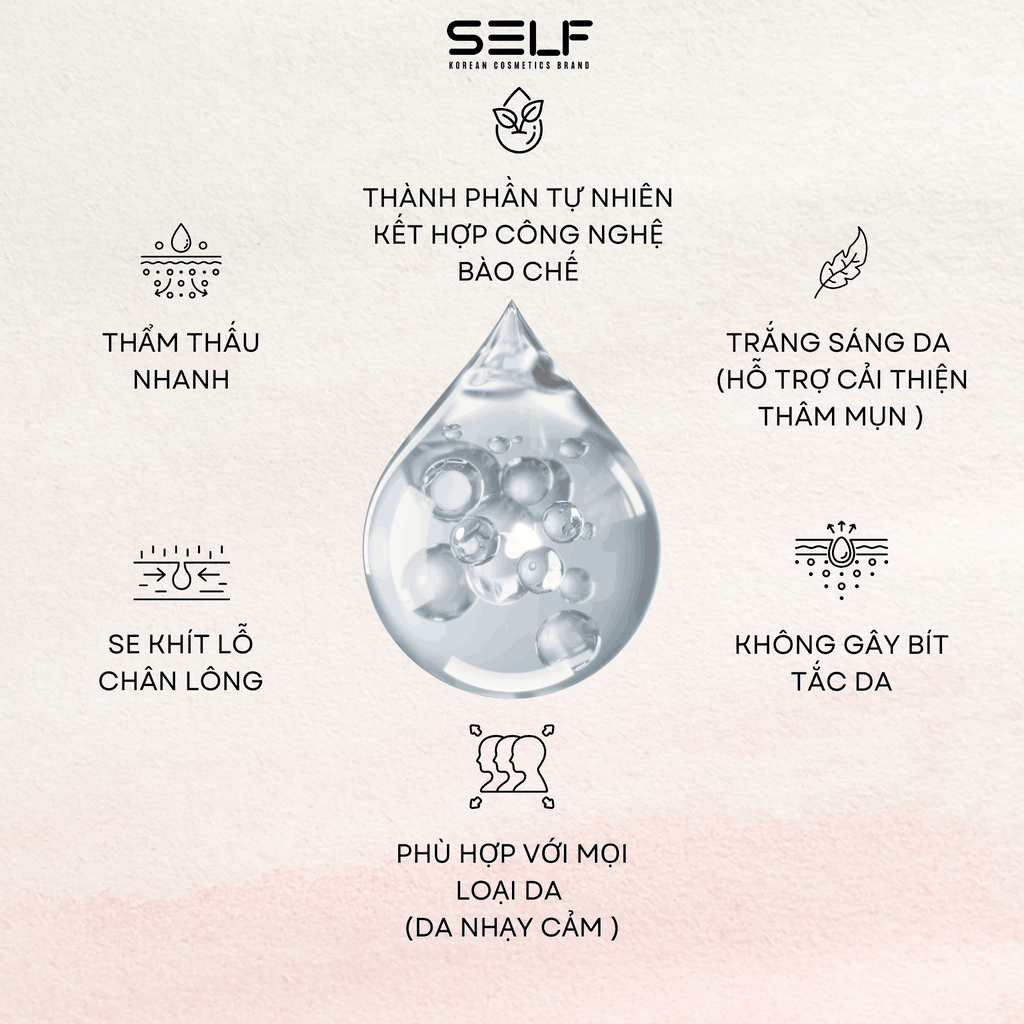 Niacinamide (Vitamin B3): Làm sáng da, giảm dầu, thu nhỏ lỗ chân lông và đều màu da.